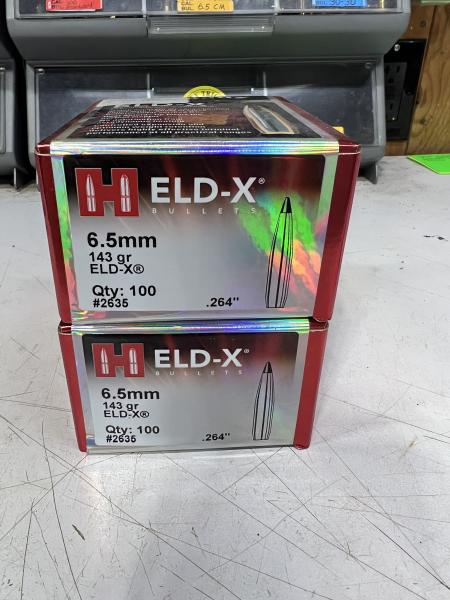 I have 2 boxes of hornady  6.5mm 143 grain ELD-X. 2-100 count boxes for $80. That’s what I paid without tax. (270)978-2040
