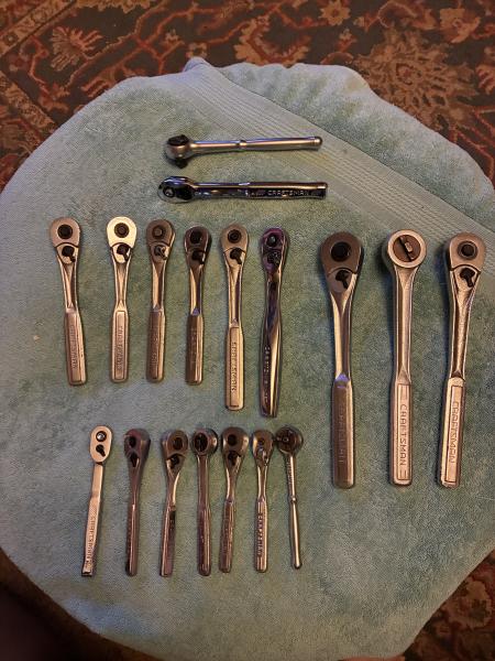 Craftsman ratchets.  All are USA made but2.    1/4. 3/8. 1/2 drive. All great condition.  Call. Or text.    $250. For all