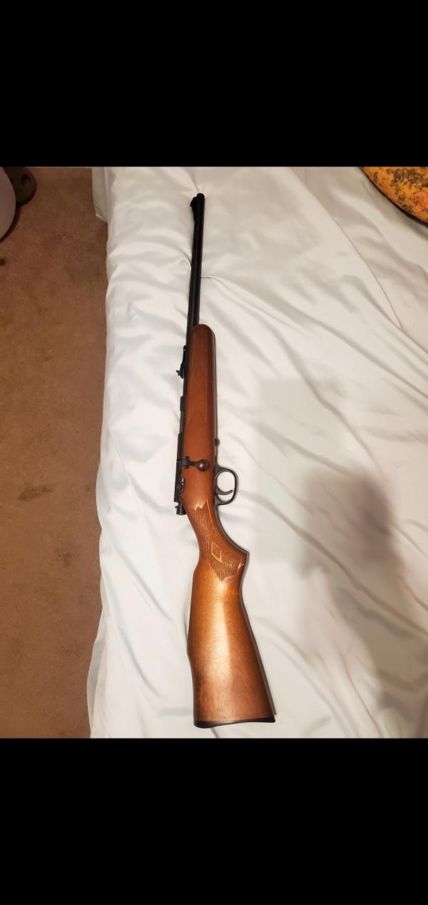 JM stamped Marlin Youth model 15YN.  Single shot 22 bolt action.  Shoots Shorts, Long, and Long Rifle.