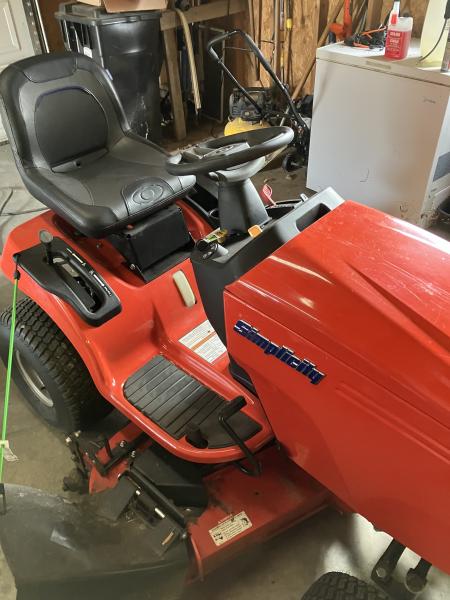 I am selling my Simplicity Regent tractor type mower. Has a Briggs and Stratton engine. Hydrostat transmission. Power deck adjustment. Striping roller. Cast iron front axle. Fabricated, heavy duty deck. Steel hood. Not a cheap plastic one. Mows beautifully I just can't use it anymore. I paid $3600 for it year before last at Hoyers in Brookport.