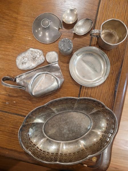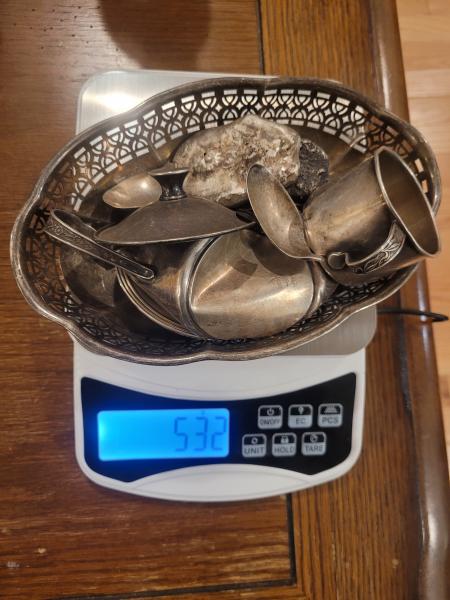 The product is 532 grams of sterling silver (.925) scraps, originating from the United States. This precious metal is highly sought after for its purity and quality, making it a valuable asset for jewelry makers, collectors, and investors alike. With a composition of 92.5% silver, this product can be melted and refined to create new and beautiful pieces of sterling silver jewelry or decorative items. As pictured a few pf these have already been melted down. The pieces that have not be melted down are marked sterling.