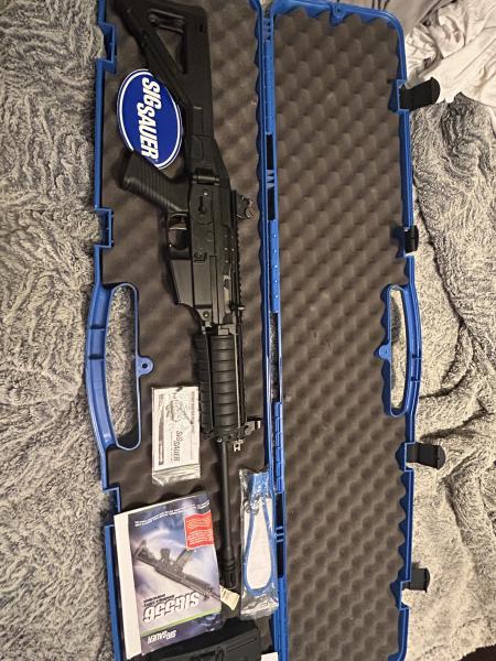 Sig Sauer 556 rifle like new. Has had less than 60 rounds fire through it. Comes with one factory mag lock and original case.$1000 text 270-994-5914