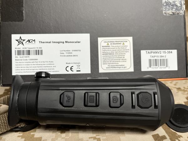 I have a thermal monocular from AGM. It is a 384 resolution. The base magnification is 1.5x. It zooms to 12x, records, has white hot, black hot, red hot and all. Charger, batteries all factory stuff. These are great for spotting game day or night, recovering deer and turkey, and scanning for targets during night thermal hunts. I will be using it until it sells. I got it new around a year ago. Selling to upgrade to one with a range finder and ballistics.