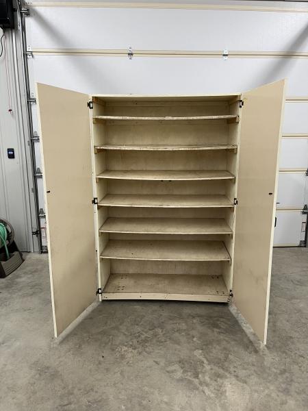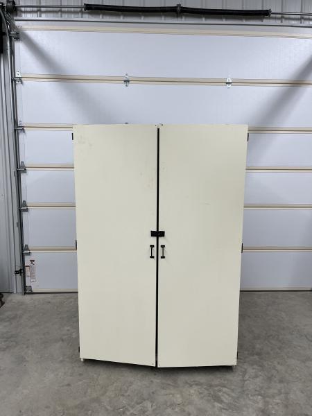 Garage cabinet on wheels easy to move around.