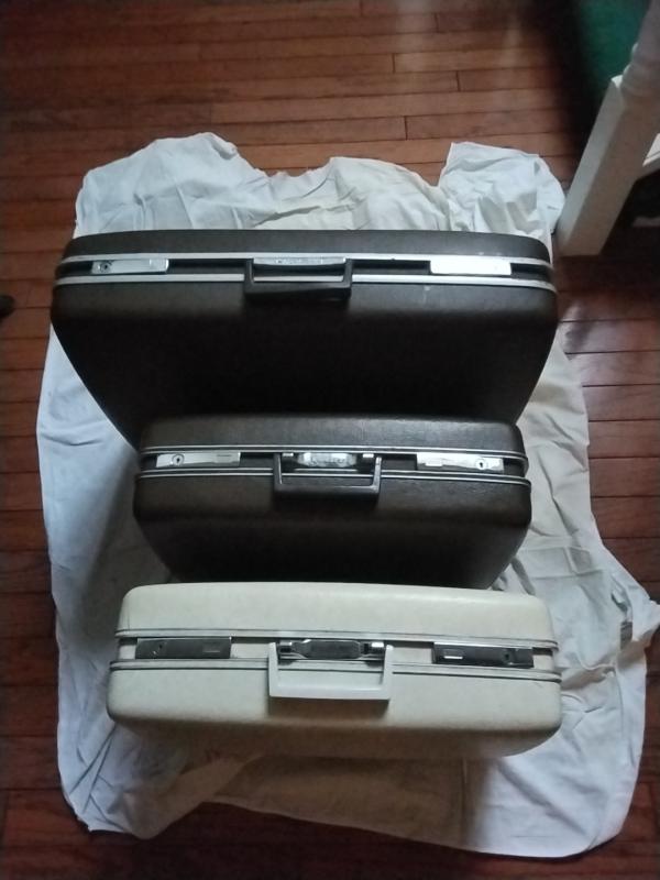 Small Brown & Small White - Nominal 20 inches by 15 inches by 5 1/2 inches (front) /6 1/2 inches (rear).  Have only 1 key, but it fits all three.  Will take $15 for all of it.  Call or text 270-527-2654, or message via VCI