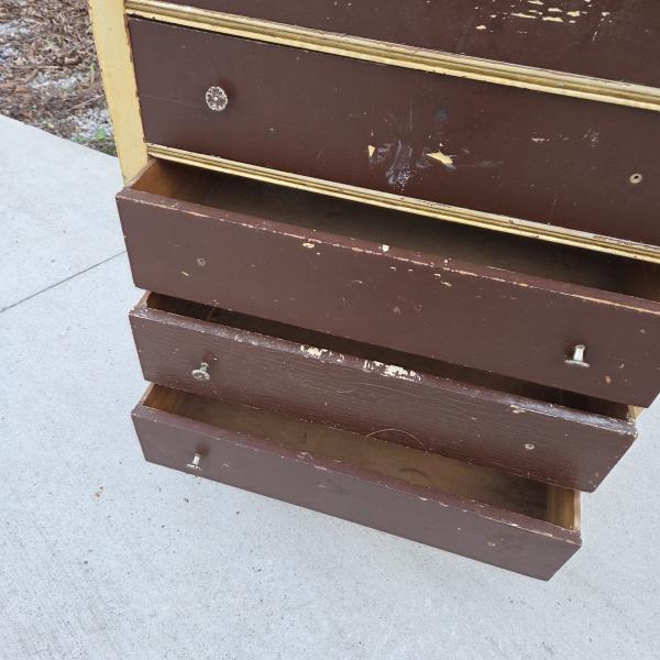 Vintage 5 Drawer Wood Dresser w/ Turned Legs