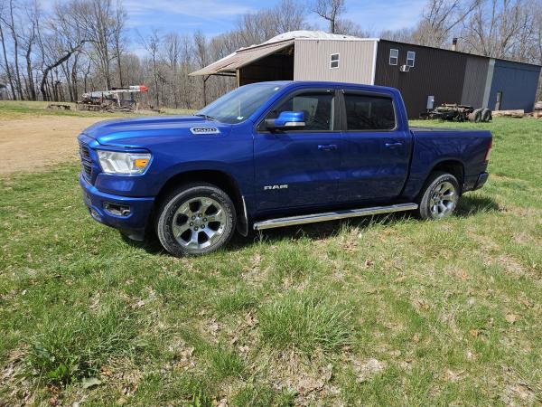 I have a 2019 Ram 1500 Bighorn 4x4.  This truck has a Kentucky rebuilt  title that is free of Leins.  I bought the truck with light damage on the right side. There was no frame damage in this truck.  The truck has the 3.6L engine with the 8 speed transmission and gets very good fuel mileage.  Has 3:55 gears and trailer tow package.  Will easily pull the weight a 1/2 ton is designed to handle.  It has a very nice, black interior that is immaculate in condition.  Never smoked in.  This is the larger cab that has a ton of room in the back.  Very comfortable truck that rides and drives great.  Is not perfect on the right side.  Drivetrain and interior are 9 out of 10.  Will need tires soon so I pulled a $1000 from my price for the tires.  If a person is looking for a very nice truck that has some scratches, this is their rig.  I will be over the road and no longer need it.  270 562-192nine  Arlington KY feel free to call