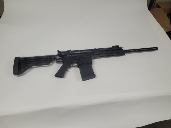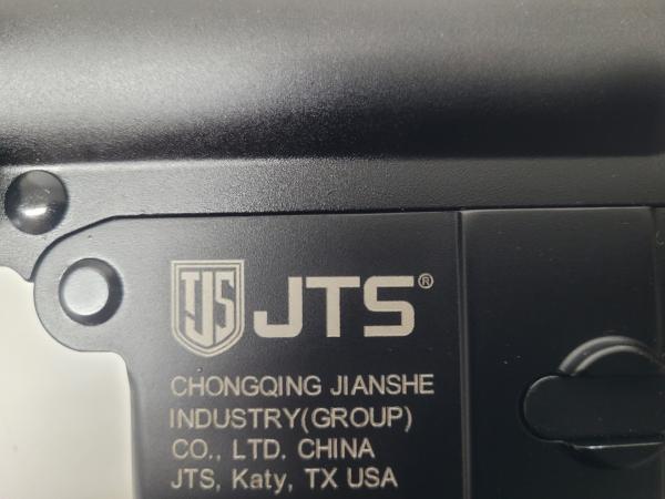 JTS M12-AR shotgun 12 GA Made in China, AR style shotgun with one detachable 5 round magazine and pistol grip. Made by Chongqing Jianshe Industry (Group) Co. LTD China and imported by JTS Katy, TX USA. There are some scratches on the bottom side of the barrel shield (pictured)