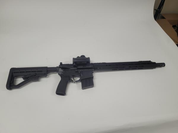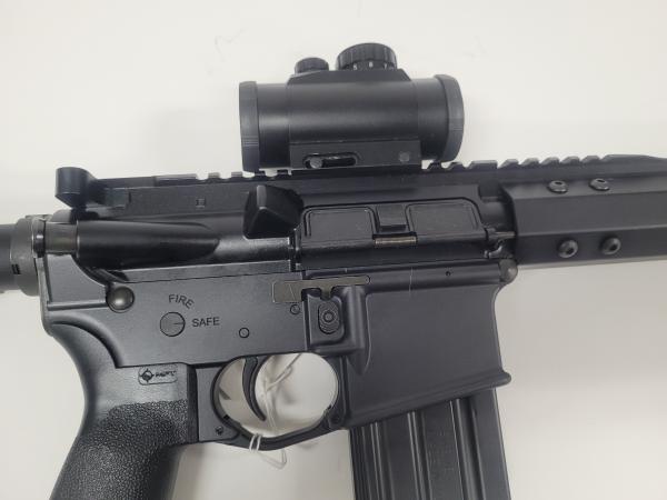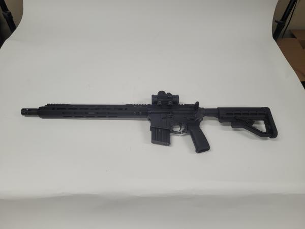 Unbranded LLC AR model UAR-F rifle chambered in 450. Comes with one 7 round magazine and a red dot sight