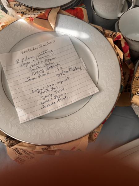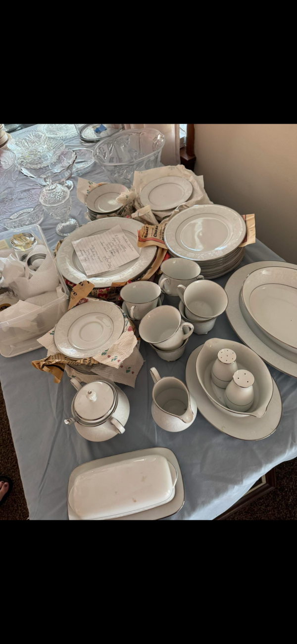 We have a 8 plate setting of Nortake Ranier fine China. It has salt and pepper shakers, gravy bowl, butter dish along with a 8 piece plate setting. It retails for $256 on eBay. We are asking $125. If you have any questions please let us know.  Thank You.