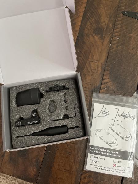 Vortex Venom 3MOA Red dot sight complete in box and Lobos industries Ruger Mark Series Low Profile Mount for Venom/Viper cut optics. Everything to get a red dot on a Ruger .22 pistol. $160 for the set, will not separate. Text 270-366-2515.