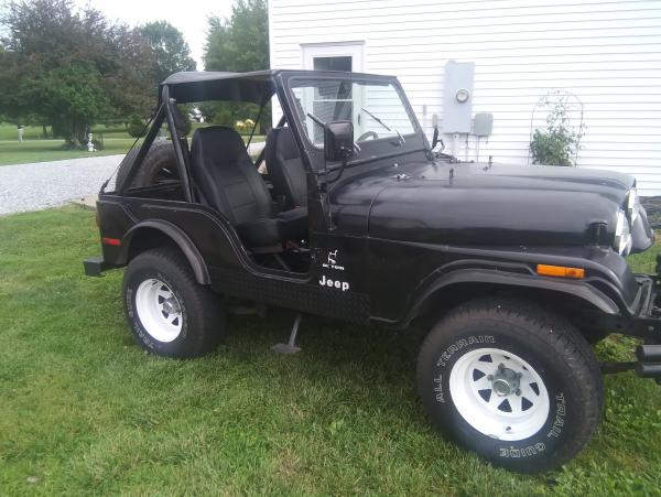 Factory black mostly org paint. Runs great drives great, has rust in the usual cj places. Its not a crappy old rusty jeep, but a dependable old jeep it is. Doesnt smoke, but leaks a little oil. Single exhaust, 12-14 mpg, gas guage, wipers, washer, heat all work. All lights are functional except the cluster (dash) lights. Front glass is good and I have a good back seat for it. Ive owned it for a couple of years and it is a great old jeep.