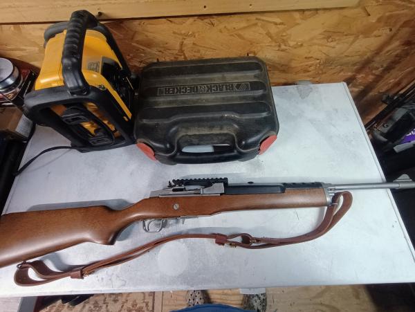 I have a really nice stainless Ruger ranch rifle mini 14 chambered in .223 and mags pictured. Might consider trades and or partial trade with cash. 270 205 7481