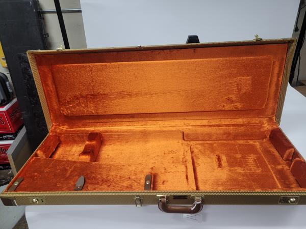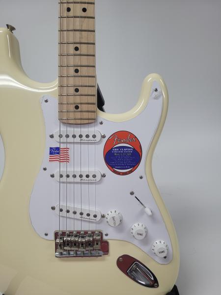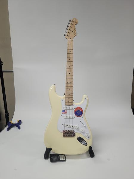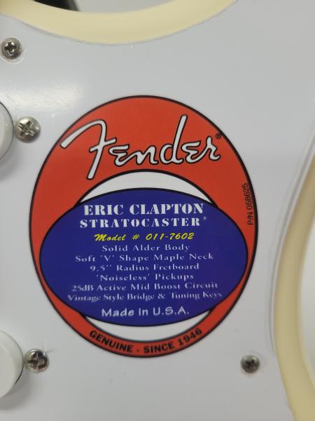 2022 USA Fender Eric Clapton Artist Series stratocaster. This is a very cool guitar. I purchased this for myself direct from our distributor as a factory second. Despite loving the guitar I did not play it preferring a Telecaster. There is a small repair on the back side of the body at the neck heel. It does not affect playability. It comes with a hard tweed case.