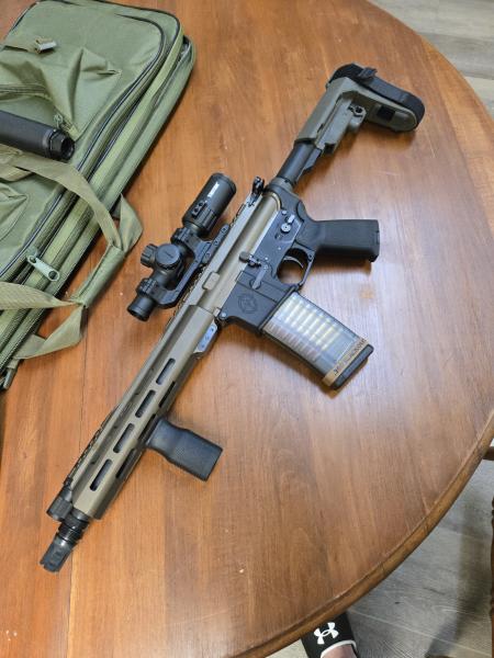 There’s a bit more here than meets the eye so read closely. I am selling my custom build AR-15 300 Black out pistol. This weapon is built on a Vigilant Arms lower (produced in Murray Ky), It has KAK industry buffer kit and lower parts kit. I have installed the H3 Heavy buffer along with the Atrius Ambidextrous super selector. This has 3 positions. Safe, Semi and FRT. If you are not aware of how the weapon functions in FRT position, go check it out on youtube. It has the adjustable brace stock as well. The upper is a 10.5 inch, bear creek arsenal with the mlok rail cerakoted in “midnight bronze”. Optic is a Triton 1x6 LPVO with illumination. It has magpul grip and foregrip and a mlok mounted flashlight. I have a regular muzzle for this weapon, as well as a QD Muzzle, which would allow you to easy attach and detach a suppressor with the adapter. I can have either muzzle on the weapon for the purchase. I have $1,300 in this weapon. I am selling it for $1,100 FIRM. I can assure you that this weapon could not be built for less and you’ll be saving with the listed price. Along with the purchase, I will include (2) translucent 30 round magazines and (100) rounds of subsonic ammunition. I am open to trades or partial trade/cash offers. For inquiry, please text (270) 227-7762