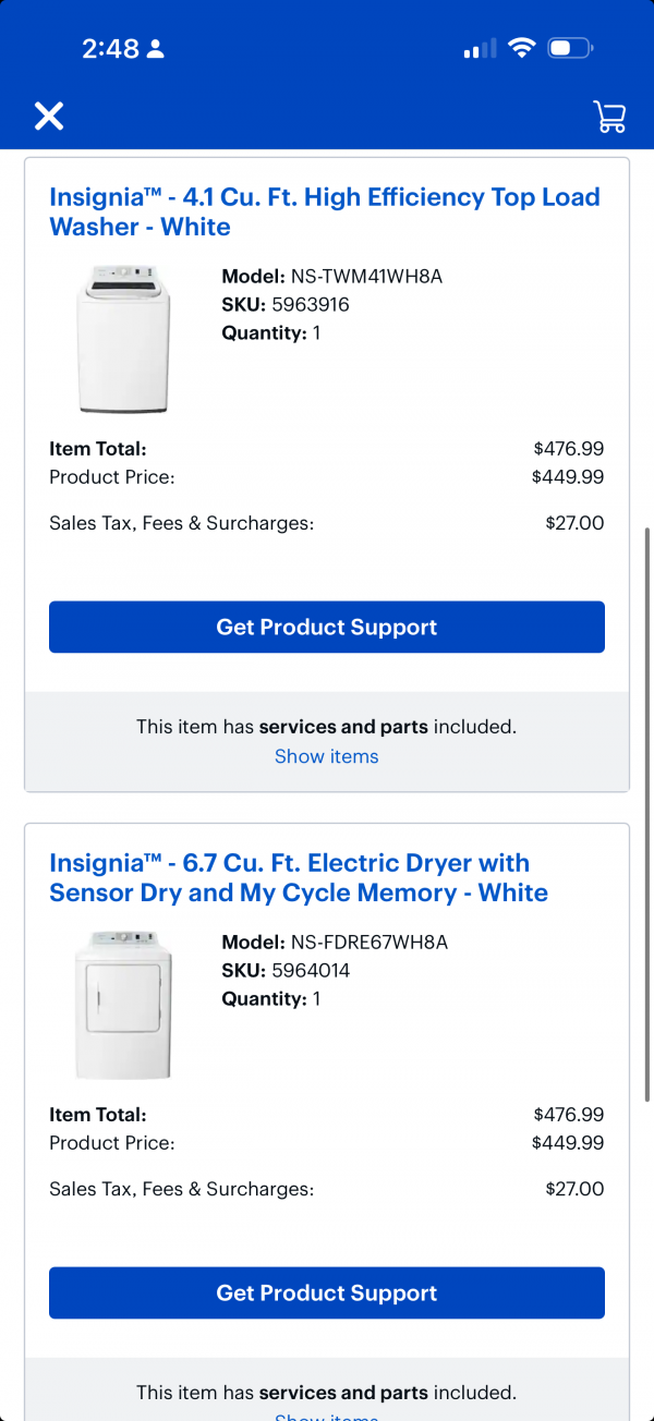 Almost new Insignia washer set. Paid 1200.00 just dont need. Moving...sold as set only. 600.00. 270-556-3403