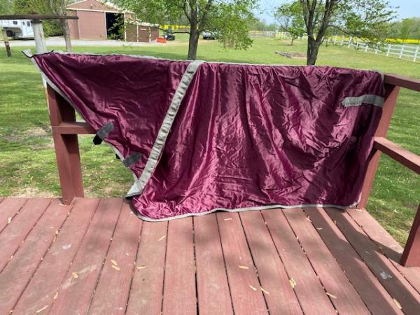 This is ad #1 for 5 show sheets altogether  - horses sold, show equipment for sale!  These sheets have sizes posted, some for weaning / yearlings (or ponies!!) and some adult sizes.  #1 - Burgundy colored cooler - goes over body and neck - like new - 80" - $30.00.  #2 royal blue sheet - like new - 54" - $15.00.  #3 lime green sheet - like new - 74" - $20.00.  Will sell all FIVE together for $90.00 total AND add in a 6th sheet for free (couple of dings but still useable - 70").  See second ad.  Cash only please.