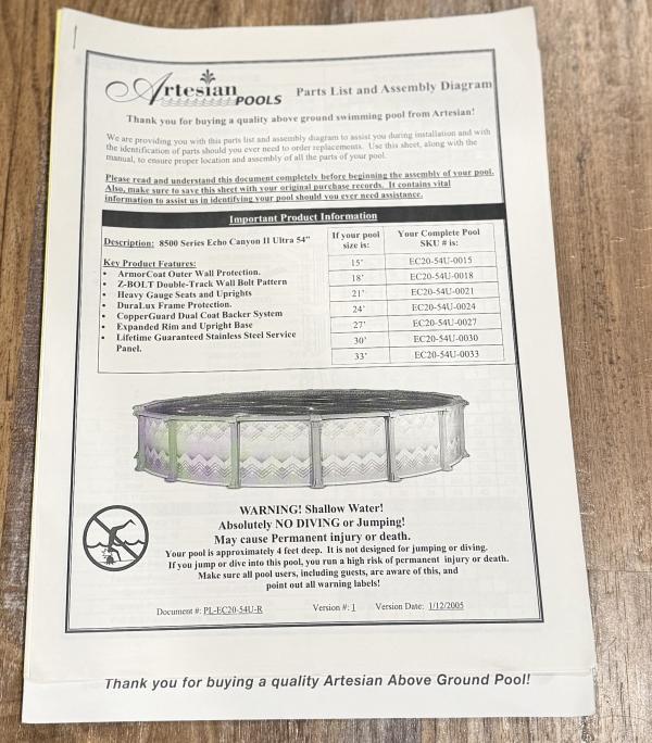 24 ft Artesian pool 54 ft walls