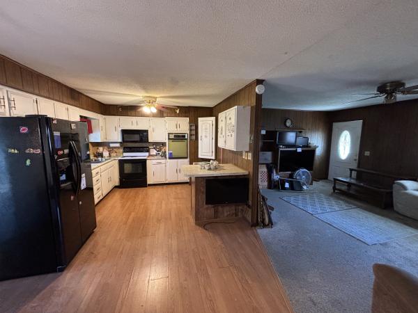 Eat-In Kitchen: +/- 20’6” x +/- 11’6” upper & lower cabinets, built-in stove, free-standing stove (offered separately), black Frigidaire refrigerator w/water & ice in door (offered separately), ceiling fan, patio door leading to closed-in patio, & chandelier light
