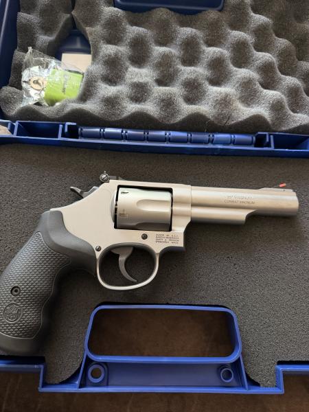 Smith & Wesson 357 combat magnum, 6 shot, only been shot like 5 times. In like new condition comes with case asking $700.