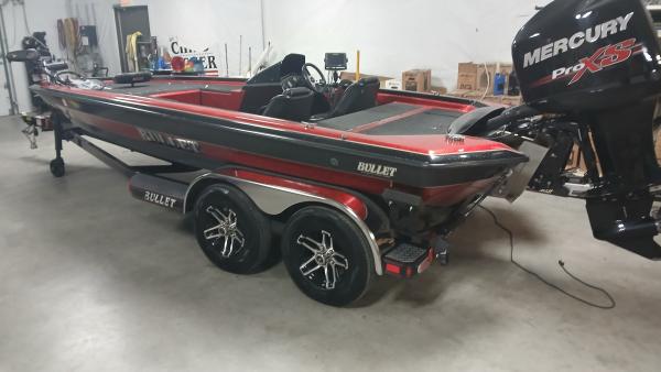 Garage Kept 1996 Bullet 20XD with a 2013 Mercury 200 Pro XS (perfect compression) and a 2022 Tandem Axle Bullet Trailer.  This is as fine of an old Bullet as you will ever see!!  Been garage kept its whole life.  The owner who traded it to me install this motor new in 2013 and he has taken exceptional care of it, motor is super strong and very clean.  He replaced the trailer in 2022 with this tandem axle bullet trailer that he bought brand new.  We felt the boat deserved a modern trolling motor so we have install a new Minn Kota Ultrex 80lb/24volt/52" trolling motor.  Batteries and charger all check out. We have not seen many like this one, especially at this price range.  Don't wait!! $20900 firm will get you out and fishing.  Give us a call at 270 928 3253 or stop by.