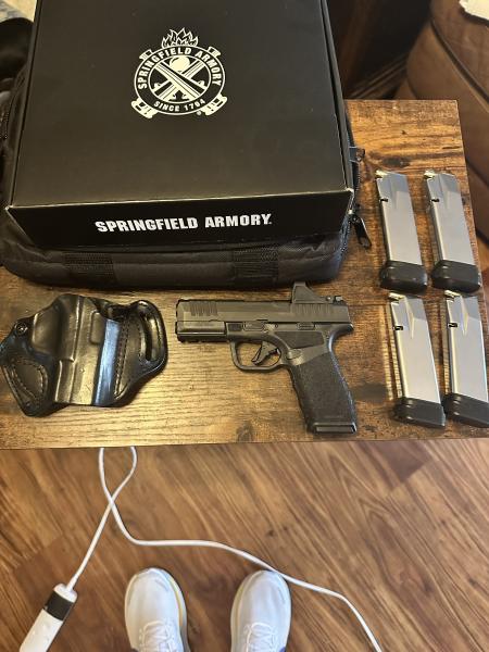 I have for sale a New, never fired Springfield Hellcat Pro w/RMR package deal. I bought it new and never fired it. The package deal includes original packaging and range bag, pistol w/RMR, 4 x 17 round mags & 1 x 15 round mag (All Loaded with New Hollow Point Ammo) and a DeSantis optic cut leather OWB holster. Asking $800 for the package. I will consider trades/partial trades towards other pistols. Currently only interested in 357 Magnum Revolvers w/ 2”-4” barrels, 44 Magnum Revolvers w/ 2”-4” barrels or AR Pistols (9mm or 556) but will consider other trades. If interested call or text (Text Preferred) at 270-703-3845. If you have a trade, please send pics with your text. If ad is still posted it’s still available. Thanks for looking and have a great day!!