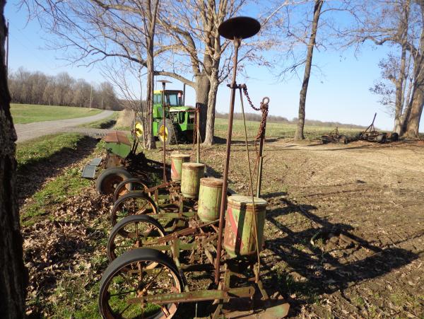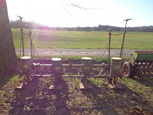 JD 4 Row 38" 3 P.H. Corn Planter - How handy is this? 3 P.H. hitch gets you in a lot more places easier. Even haul it on a 16' trailer! Includes corn, bean, and milo plates. Skid plates for easy depth adjustment. Very nice hard to find planter, and spring is here. $850.00 618-658-2106