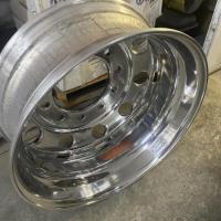 We have 24.5 hub pilot round hole aluminum wheels. Some polished for steer and some for drive position. Includes new valve stem.16 ft. Toy Hauler