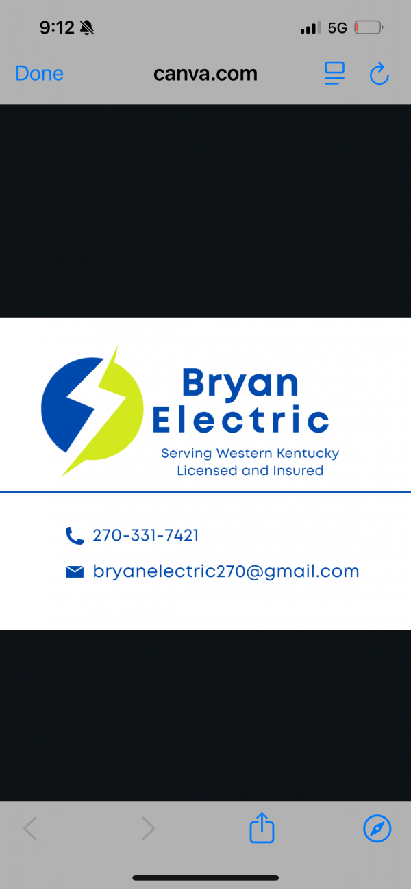 Hi if you are looking for a electrician look no further no job too small free bids I do everything from changing a switch to wiring up your shop. Give me a call i will give you a price you wont turn down 270 331 7421. We are licensed and insured. Check us out on google or yelp. Email bryanelectric270@gamil.com