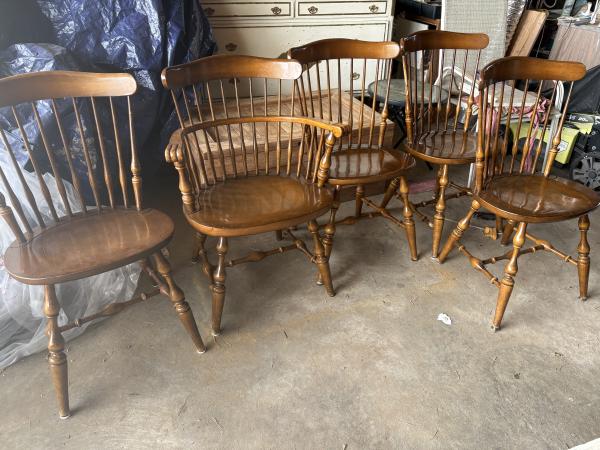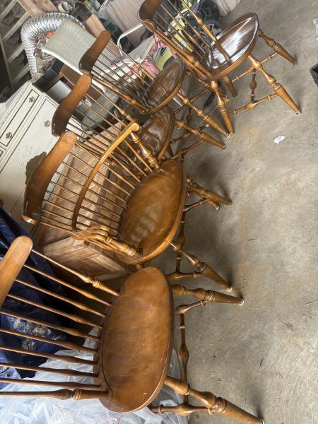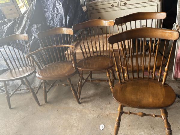 The chairs are solid wood in great shape there are 5 of them with a captain chair included will take 135 for all chairs call or text 270-559-9808
