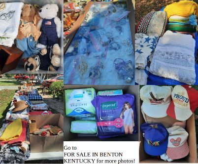 Hunting Bow & Case, Quilts, Afghans, Wooden basket, Women’s Clothing and bathrobes S-M, Jewelry, purses, hats summer & winter, shoes, Tena & Depends (new). Men’s clothing & hats. Bears, Doll Babies, Doll with WT wooden cradle. Tablecloths, Aprons, Multiple Cookbooks, Ironing board, Crochet Patterns, Magazines, Amish Story Books, DVD Movies, Assorted Framed Art, Nice black fold-up walker. Finished wooden storage boxes S & M, Household decor, heavy metal wood burning stove parts. Too much to list. Come see!