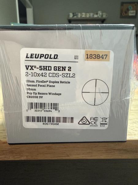 This is a brand new in box and plastic wrapper Leupold VX5 HD Gen2 2-10x42. It retails for $1499.99. I am asking $1000 obo. Call or text 2707056342. Thanks