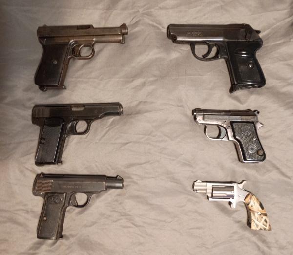 6) NAA Gator .22 mag with factory box and lock box, extra set of new grips, factory holster, and snap caps. $300