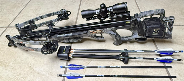 Very nice, shot less than 50 times high-speed crossbow. Ten Point Wicked Ridge NXT 400 with the Accudraw system and Ten Point Crossbow scope.