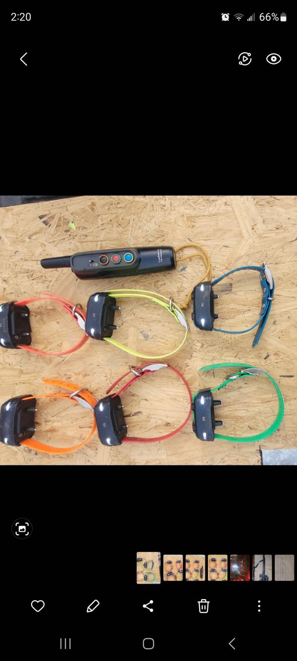 Garmin pro 70 electronic collar system. 6 collar with new batteries.These collars are equipped qith lights so you can watch your dogs lication as he hunt while if you run your hounds at night like i do. Reciever is 6 months old. Comes with chargers box and instruction manual. This system works like new. Retail for $1050 new. Everything here works like new and as it should. Will entertain saleing some of the collars seperate for $115 each. Ready to put on hounds and hunt or train.