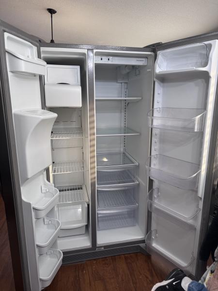 2 years old. Works good, only selling because we just got a new bigger fridge.