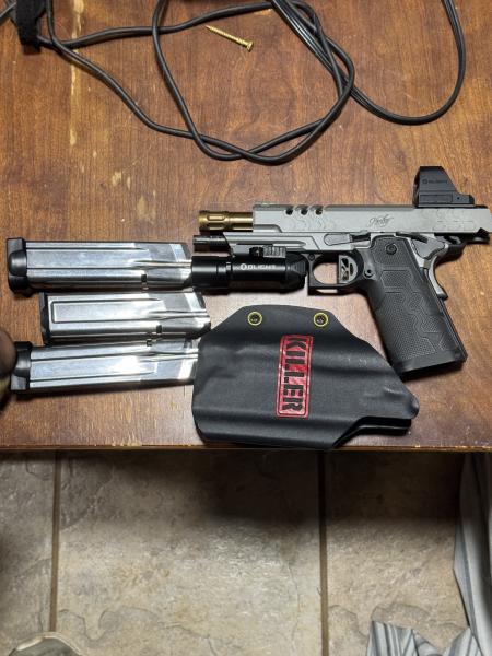 Kimber 2K11 9mm 5” ported with trigger work,1-17rd mag,2-20td mags,Olight red dot,Olight light,paperwork and Kimber carry case maybe 500 rds run new condition 1650 firm you can call or text 270three5zero 80two6 possibly trade for Staccato ??my trade value is 2,500