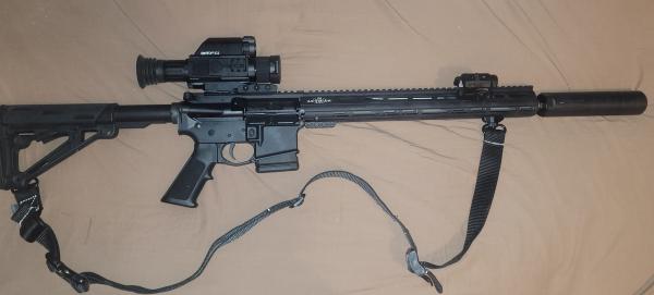 Ar 15 wylde .556/.223. Custom built.ballistics advantage barrel. Luth upper and handguard. Rise trigger anderson lower . Bolt is chrome lined and mil spec.dnt thermnight scope. Shot less than a box of shells theough it. Thought I would use this setup more than I do is reason for saleing.. Everything works like new and is in new condition. Everything in picture goes but the suppressor. Will seperate if someone is interested