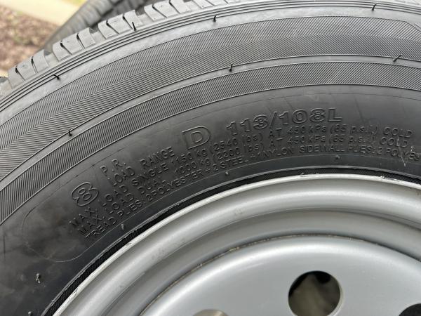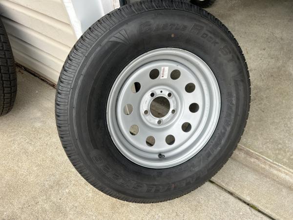 I have a 8 p,y load range D 225/75/15 radial trailer tire mounted on a gray wheel for sale. The wheel is 5 lug with a 4-1/2 inch bolt pattern. The tire has a plug near the center of the tread but it does not leak. Price is $75. Call/text me at 279-564-0235. I live in Paducah, near Lone Oak. God bless!