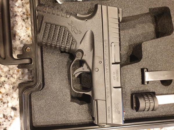 XDs 3.3 .45 ACP, case, holster,lock, 7 rd.mag and 5 rd. Mag, 2 mag. Carrier, great carry gun, shot very little has everything it had when it was brand new, 270-559-1313 must be able to legally purchase and will take a picture of drivers license