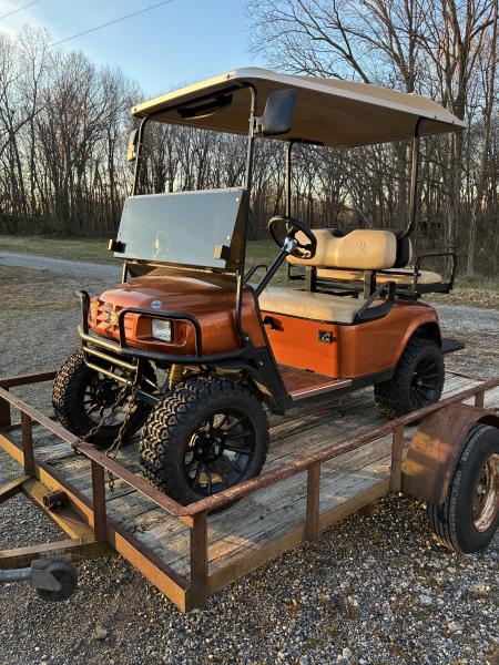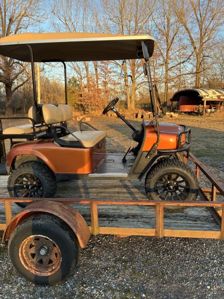 this is a nice cart with newer wheels and tires, new gas cable, has christmas lightson it!!