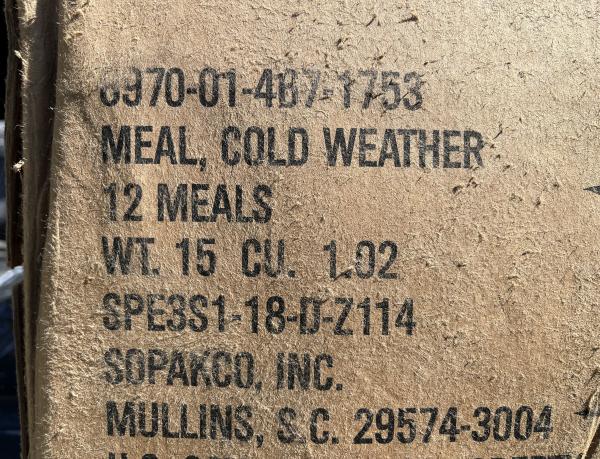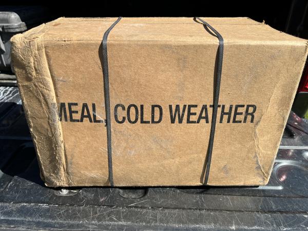 Unopened case of cold weather MREs. 12 meals that are basically a days worth of food. These cold weather ones have lots more stuff than the regular ones. Price is firm