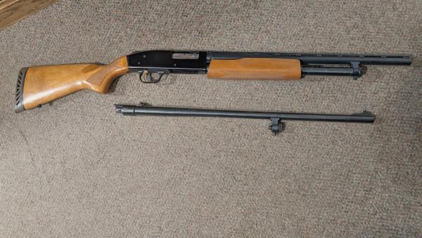 screw in chokes and shoots 2 3/4 & 3" shells. The Mossberg also comes with a 24"