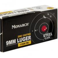1 box of 50 rounds of Monarch 9mm FMJ 115gr Steel Case