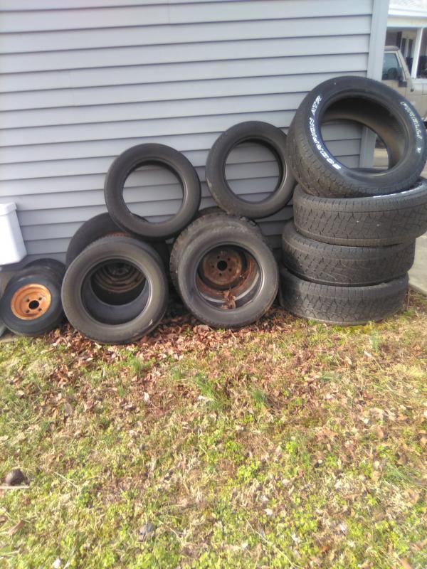 | Used tires for sale with brand, size, and price listed below. All offers considered. Call 270-527-8251 please no text messages. Firestone All Season Tire 175/65R15-4 qty $40.00 Snow Tires with rims F78-14-2qty $20.00 Trail America ST175/80D13-1 qty $15.00 Firestone with rim P225/70R14-1 qty $20.00 Tow Masters with rim 4/80-8-3 qty $15.00 |