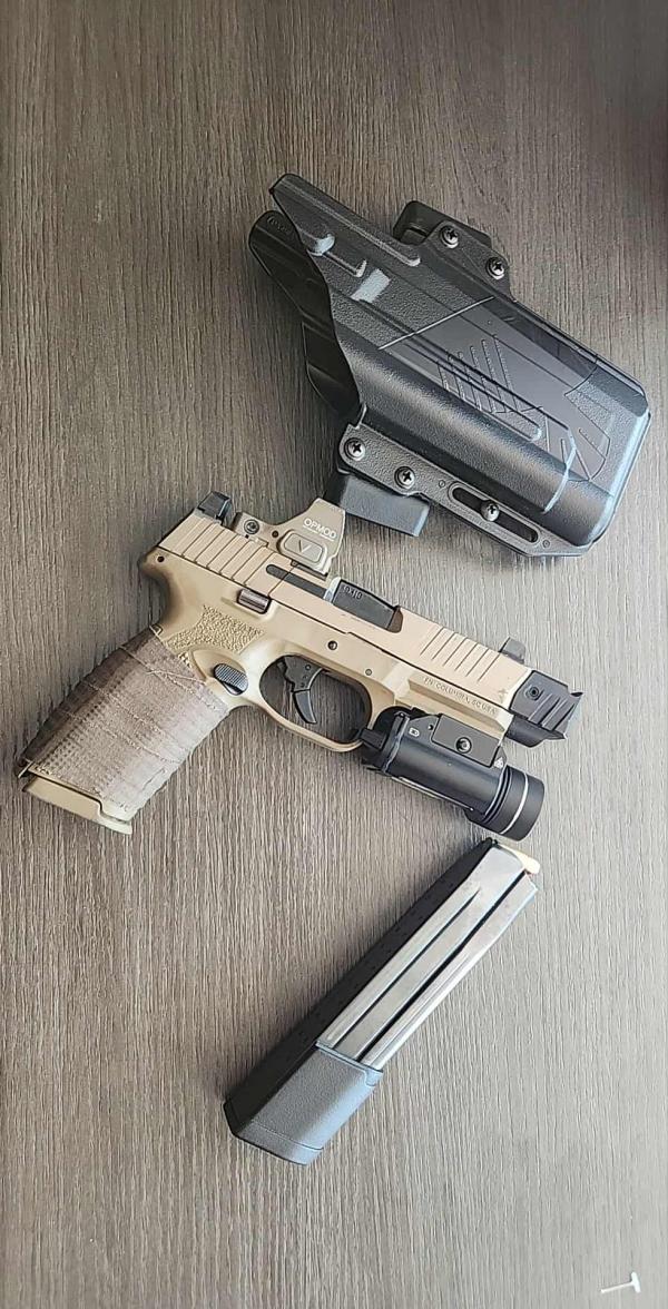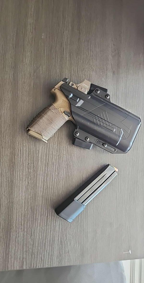 Fn 509 tactical 9mm Suppressor height night sights Threaded barrel Vortex Defender St red dot Tlr1 hl clone Kydex owb holster Compensator 1x17rnd mag 1x24rnd mag Text 2709783100 Looking at trades as well |