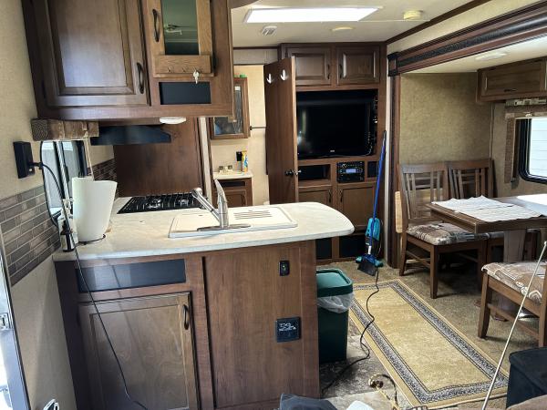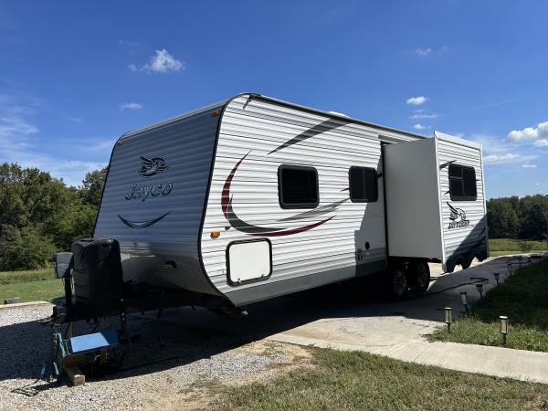 2015 24’ Jayco 24FBS Ready for Fall Camping! This unit comes complete with load leveling hitch, portable waste water tank, sewage hoses with hookups, electrical power cords with adapters, dishes, pots and pans, silverware, bedding, 3 TVs, etc. Camper has one powered slide with table and 4 chairs, queen size bed in front, couch that lets out into another bed, and powered awning with LED string lights. Camper is equipped with an outside shower in addition to the tub/ unit inside. Plenty of storage space is available. I also have a cover for the camper. The camper comes with the standard equipment including 2 30# LP gas tanks with cover, 3 burner LP gas stove with oven, built in microwave, refrigerator with freezer that operates on LP gas or electric, water heater, LP furnace, and roof air conditioner. Reason for selling is we just don’t use it anymore. Hasn’t been used in the past 2 years and it is too nice of a camper to just sit around. Asking price is $12899 OBO. If interested you can call or text me at (270) 562-1915. I can send more pictures if requested. Thanks for looking and don’t miss this great little camper! |