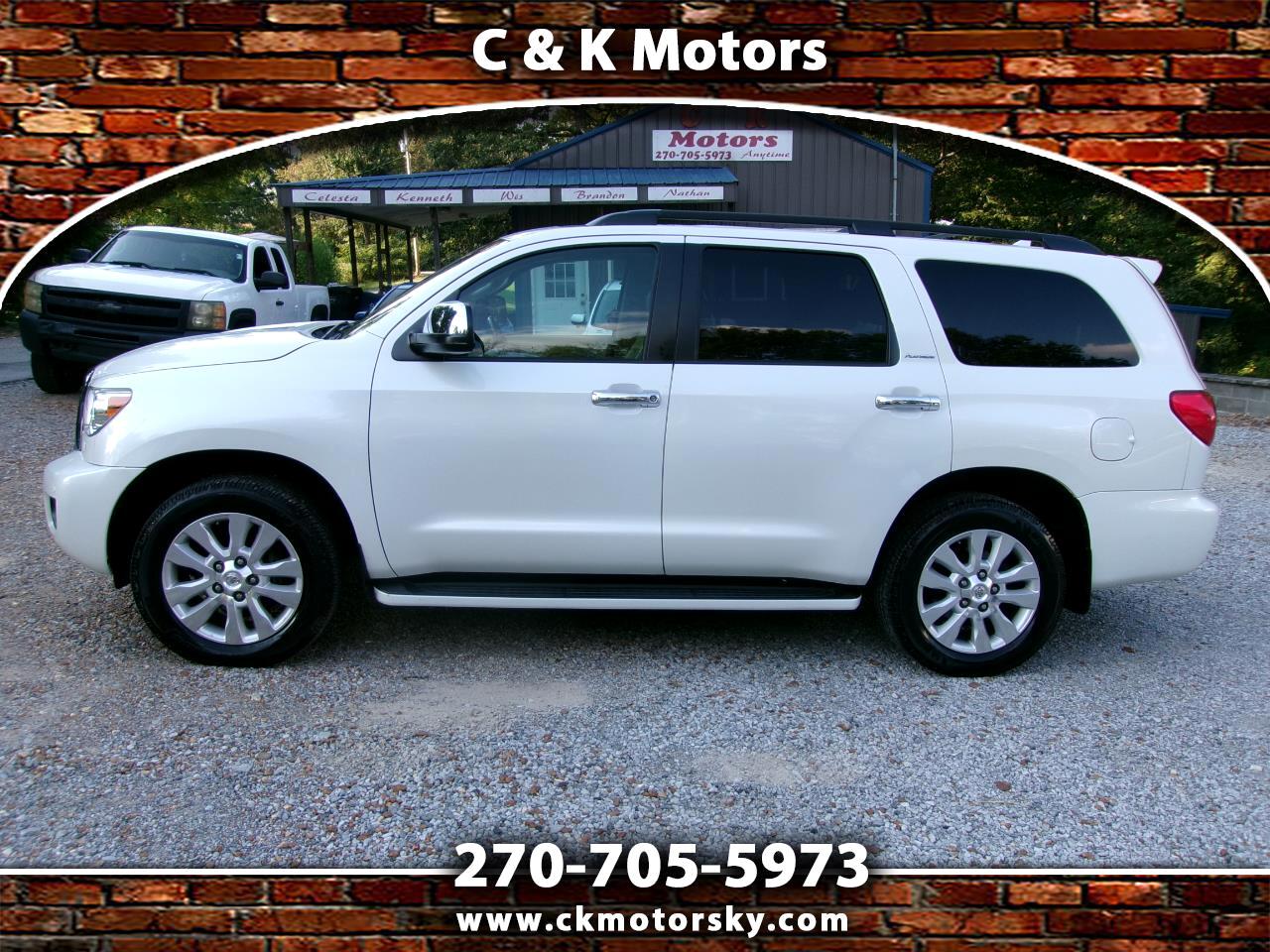 2013 Toyota Sequoia TRADES ARE WELCOMED!!! (NO DOCK FEES) We have No Haggle Prices.We work hard to find Quality Vehicles at the Best Price. We have been in business since 2000 Visit C & K Motors online at www.ckmotorsky.com to see more pictures of this vehicle or call us at 270-705-5973 today to schedule your test drive.Look at www.ckmotorsky.com before you call more pictures Vehicles details Auto Check. No dock Fees. No financing.We do not always have a salesperson on site. Text or Call Kenneth 270 705 5973 or Wesley 270 705 1329open ANYTIME by appointment. Do not be afraid to ask for free delivery 60 miles of 3870 State Route 408 Hickory KY 42051TRADES ARE WELCOMED!!! ( NO DOCK FEES ) We have No Haggle Prices. We work hard to find Quality Vehicles at the Best Price . We have been in business since 2000. 5.7L DOHC EFI 32-valve i-Force FFV V8 engine w/dual VVT-i6-speed automatic transmission -inc: sequential shift mode- uphill/downhill shift logic- tow/haul modeMulti-Mode 4-wheel drive -inc: Torsen limited-slip locking center differentialTowing hitch receiver -inc: 4/7-pin wire connectorTrailer sway controlSkid plates -inc: engine- transfer caseActive variable suspension system (AVS) -inc: electronically modulated air suspensionSpeed-sensing variable flow control pwr rack & pinion steeringPwr front & rear disc brakesP275/55R20 mud & snow tiresFull size spare tirePwr tilt & slide moonroof -inc: sliding sunshadeColor-keyed rear spoilerRoof rackRunning boardsFront & rear mudguardsChrome grille surroundMulti-reflector halogen headlights -inc: auto-off- headlight cleanerIntegrated fog lightsRear privacy glassChrome auto-dimming pwr folding pwr heated mirrors -inc: integrated turn signals- memory- puddle lamps- reverse tilt-downWasher-linked variable intermittent windshield wipersWindshield wiper de-icer gridRear intermittent wiperChrome door handlesPwr liftgate w/jam protectionPwr rear window -inc: auto-up/down- jam protection- defoggerRear seat entertainment system -inc: rear Blu-ray Disc player w/9'' display- (2) headsets- wireless remote- 115V AC pwr outlet- RCA jackOptitron instrumentation cluster -inc: speedometer- tachometer- LCD odometer & tripmetersMulti-info display -inc: outside temp- compass- current/average fuel consumption- fuel rangePwr windows -inc: front 1-touch up/down- jam controlDynamic laser cruise control (DLCC)Automatic tri-zone front & rear automatic climate control -inc: air filter(18) cup & bottle holdersOverhead console -inc: dual storage areas- driver/front passenger map lightsAuto-dimming rearview mirror -inc: HomeLink- compassDual sliding visors w/illuminated vanity mirrorsRear sunshadesDigital quartz clockGrocery bag hooksStar Safety System -inc: vehicle stability control (VSC)- traction control (TRAC)- anti-lock brake system (ABS)- electronic brake-force distribution (EBD)- brake assist (BA)- Smart Stop Technology (SST)Daytime running lights w/on/off featureFront energy absorbing crumple zoneSide impact door beamsDriver & front passenger advanced airbags w/occupant classification sensorDriver & front passenger seat-mounted side airbagsAll rows roll-sensing side curtain airbags w/cutoff switchDriver & front passenger knee airbags3-point ALR/ELR seatbelts in all passenger seats- ELR seatbelt in driver seatDriver & front passenger seatbelt pretensioners & force limiters2nd & 3rd row lower anchors & tethers for children (LATCH) systemDriver & front passenger seatbelt warning sensorChild protector rear hatch & door locksFront & rear parking assist sonarBlind spot monitorEnergy-dissipating interior trim |