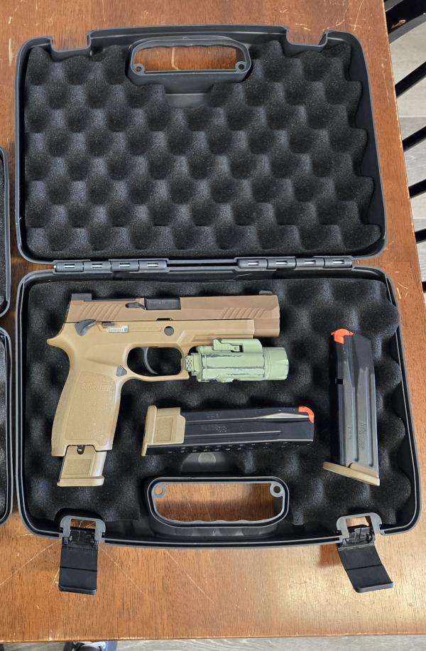 Selling my Sig Sauer M17. This is quite the package deal and the combined value far exceeds the listed price. This M17 comes in the box with the (3) mags, (2) 21 round and (1) 17 round. It comes with a light and charger, A battle belt with light bearing krydex holster and 2 mag pouch. Battle belt is adjustable and modular. It also comes with a krydex light bearing chest holster. The weapon has night signts as well. My price is firm, only trade I'd be interested in would be a Sig Sauer P938 in 9mm. Please text for inquiry, (270) 227-7762. Again, price is firm or trade for weapon mentioned above. Thank you. |