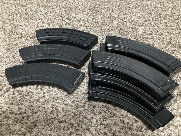 For sale are 400 rounds 7.62x39 . Wolf, Tula and Red Army mixed. .40 per rd.=$160 for 400. 10 -30 rd. Magazines, 7 steel ( SGM Korea) and 3 composite.$100 for all ($10each). All this is priced to sell, price is firm. No trades please. Sixwonfive forwonfive ninesixwonwon thanks |